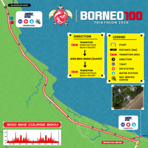 While the Olympic Distance athlete & Borneo 100 athletes carry on towards the edge of Borneo to make their U-Turn further into the bike course to complete their respective 40KM/80KM Bike Leg before returning to Sematan Palm Beach Resort for Transition & Run.